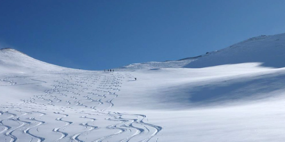 Die Silvretta hat sich schon mehrfach als der perfekte Standort für unsere beliebte Silvestertour bewährt. Das Gebiet zählt zu den schneesichersten überhaupt. Selbst in sehr schneearmen Wintern haben wir immer im traumhaften Gelände um die Heidelberger Hütte unverspurten Powder gefunden. Sollte wenig Schnee liegen, stellen wir Schneeschuhe zur Verfügung, um trotzdem auf Tour gehen zu können.